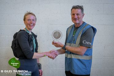 Ann Martin. Female winner 50km race. Weavers' way ultramarathon 2023. Course record 6hrs 09 min 16 secs